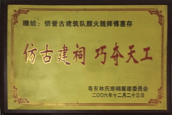 汕尾市信譽古建筑工程有限公司,是一支繼承和發揚潮汕民間傳統工藝文化的仿古建筑團隊。公司秉承“信者,行于天下”的理念,以“傳承與發展,建筑與藝術,歷史與文化”為宗旨,為各界朋友提供專業、誠信的服務,精誠合作,共同發展。 汕尾市(海陸豐)信譽古建筑工程有限公司擁有泥工、木工、石工、饒工、油工等齊全的專業技術工種,團隊主要工種成員都是傳統古建筑專業民間工藝師,承接項目眾多,技藝高超。團隊領導顏火隨,是潮汕海陸...[詳細]